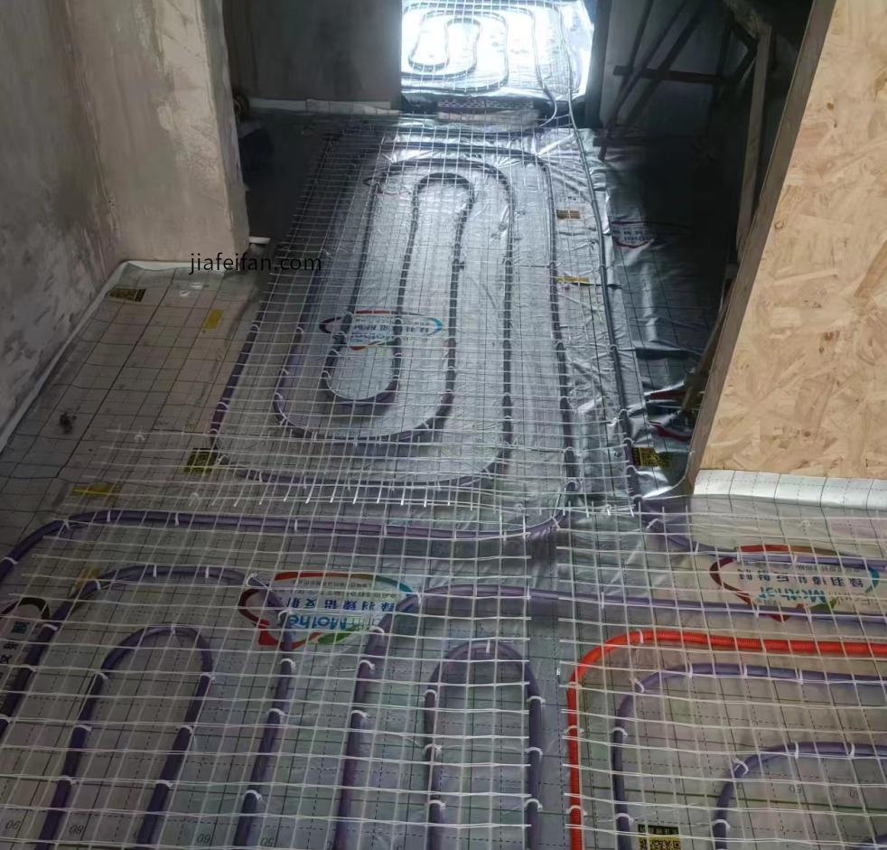 吴江天铂小区某工地采用瑞好PE-RT紫色地暖盘管搭配EarthMother绿羽保温板、反射膜和硅晶网。