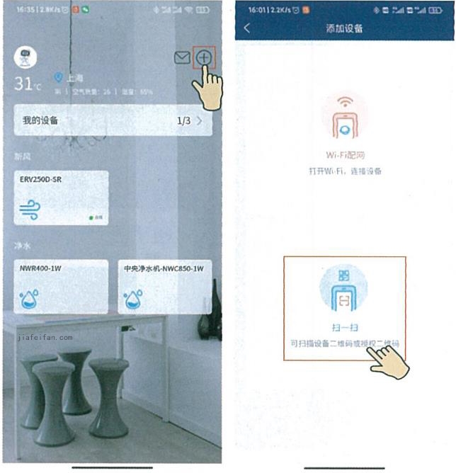2、添加设备:点击APP首页右上方的“+”,进入“添加设备”(如下图);