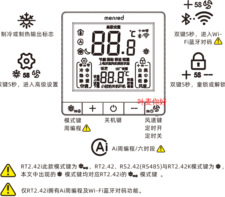 menred曼瑞德水机风盘温控器RT2.42/RT2.42i/RT2.42K使用操作说明书教程