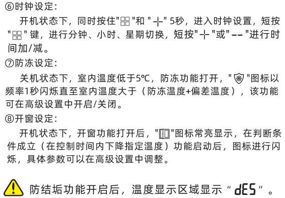 7功能:防冻设定和8功能:开窗设定。